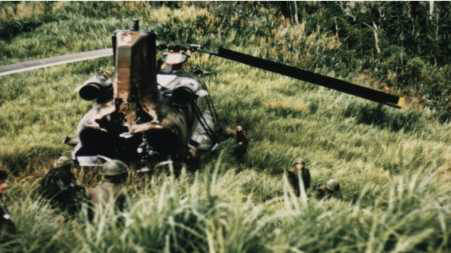 Indian style, to hook up the sling. When the aircraft came in, the downwash started the blades turning. Pretty funny watching him spin around and yelling like a banchee. I went up and grabbed a forward blade and because the forward part of the aircraft was facing the downslope of a hill, the forward blades were only 1 or 2 feet off the ground. I basically hugged the forward blade to keep them from turning so they could hook up the aft head. That blade beat the @*%$! out of me and I had a big bruise on my chest for a month. Jim Wheeler. |