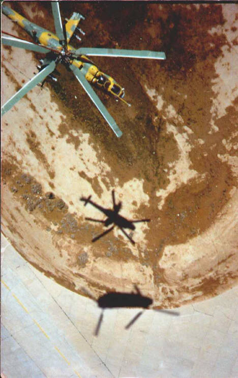 Iraq. In the first photo below, the sling is attached to the Hind and 072. The second photo was taken from the cabin door just after takeoff.