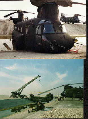 130 tried to taxi through Chinook parking one night and blew this Chinook into the ditch. |