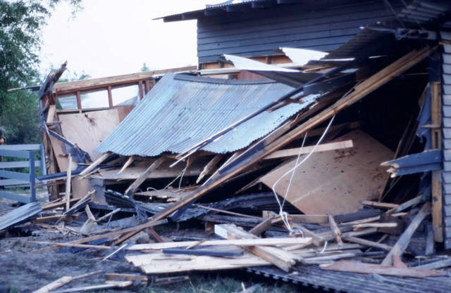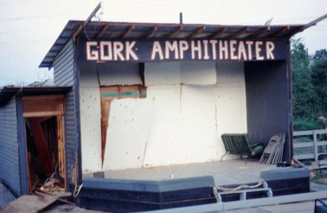 Front and back of Gork Theater after rocket attack.